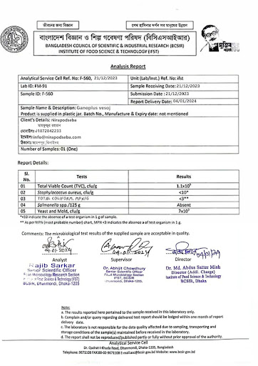 নিরাপদ ব্যবহারের নিশ্চয়তা BCSIR পরীক্ষিত